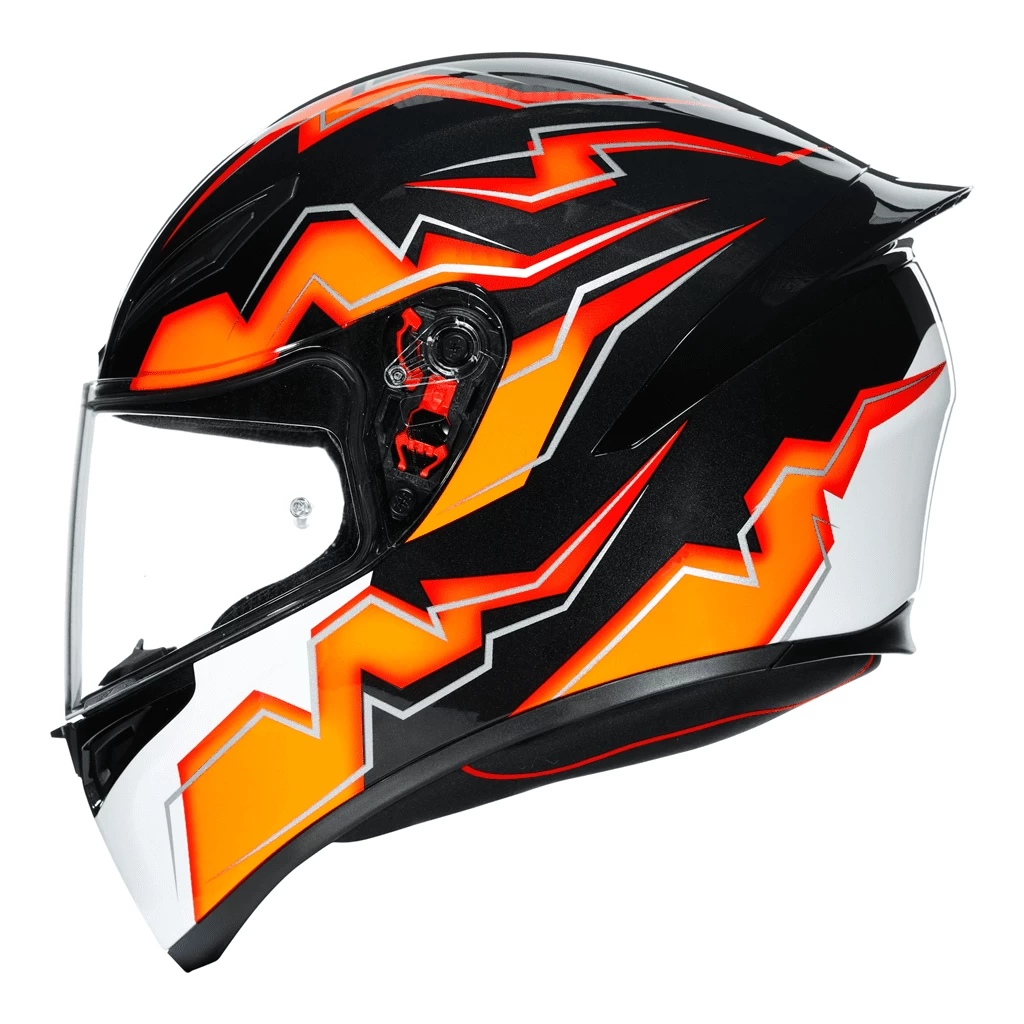 The anti-scratch visor is Pinlock ready; Pinlock inserts minimise the misting of the helmet when riding in cooler conditions, leaving you with a clear field of vision. A Pinlock insert is not included with the K1 helmet as standard, however these anti-fog inserts can be purchased separately. The visor is easily removable thanks to the AGV quick remove system for their visors. No tools are necessary for removing your visor. The extended vertical view and 190ยฐ vertical view offer supreme visual capabilities and optimised for sports style riding.