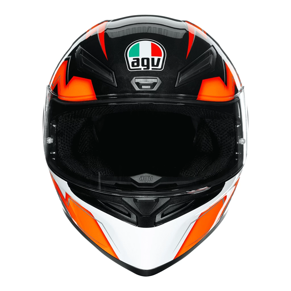 The ventilation in the AGV K1 come in the form of two chin vents and three upper vents, designed to capture as much air as possible when travelling, providing direct air flow into the helmet. The new Biplano inspired spoiler on the K1 features multiple ventilation extraction areas, ensuring that warm air exits the helmet just as efficiently as it enters.