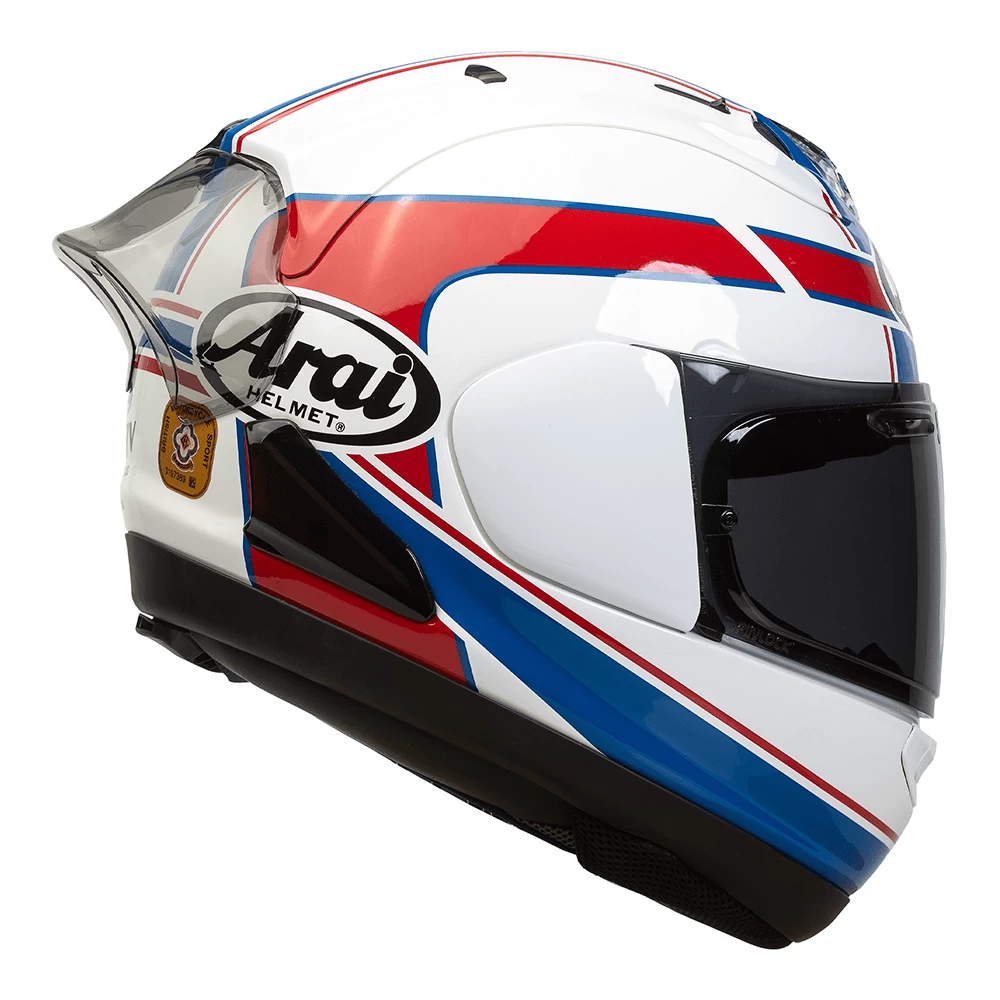 The culmination of decades of racing expertise, the Arai RX7V Evo offers the very best in motorcycle helmet technology for sports bike and racing use. From the incredible Free Flow ventilation system to the pull down chin curtain and adjustable Air Wing, the Arai RX-7V Evo is the ultimate track ready race helmet that gives you complete peace of mind knowing that your head is fully protected and allowing you to concentrate on the next corner.