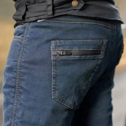 You’ll also find welded waterproof YKK zippers, which lock out the water from entering the pockets, keeping your belongings dry in these waterproof jeans. You’ll find these welded zippers pockets at the central fly zipper, the two rear pockets as well as a smaller pocket at the front left of the jean. In addition to these pockets, two hip pockets offer additional storage opportunities for your essentials that you may need when on the road.