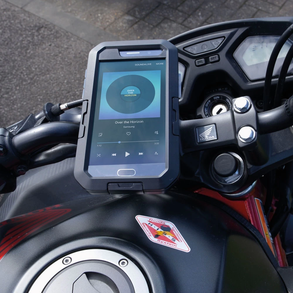 This waterproof phone case is also touchscreen compatible, ensuring that the phone can be used within the case. Perfect for navigation, you can set your destination from within the case, attach to your bars with the simple fastenings and hit the road!