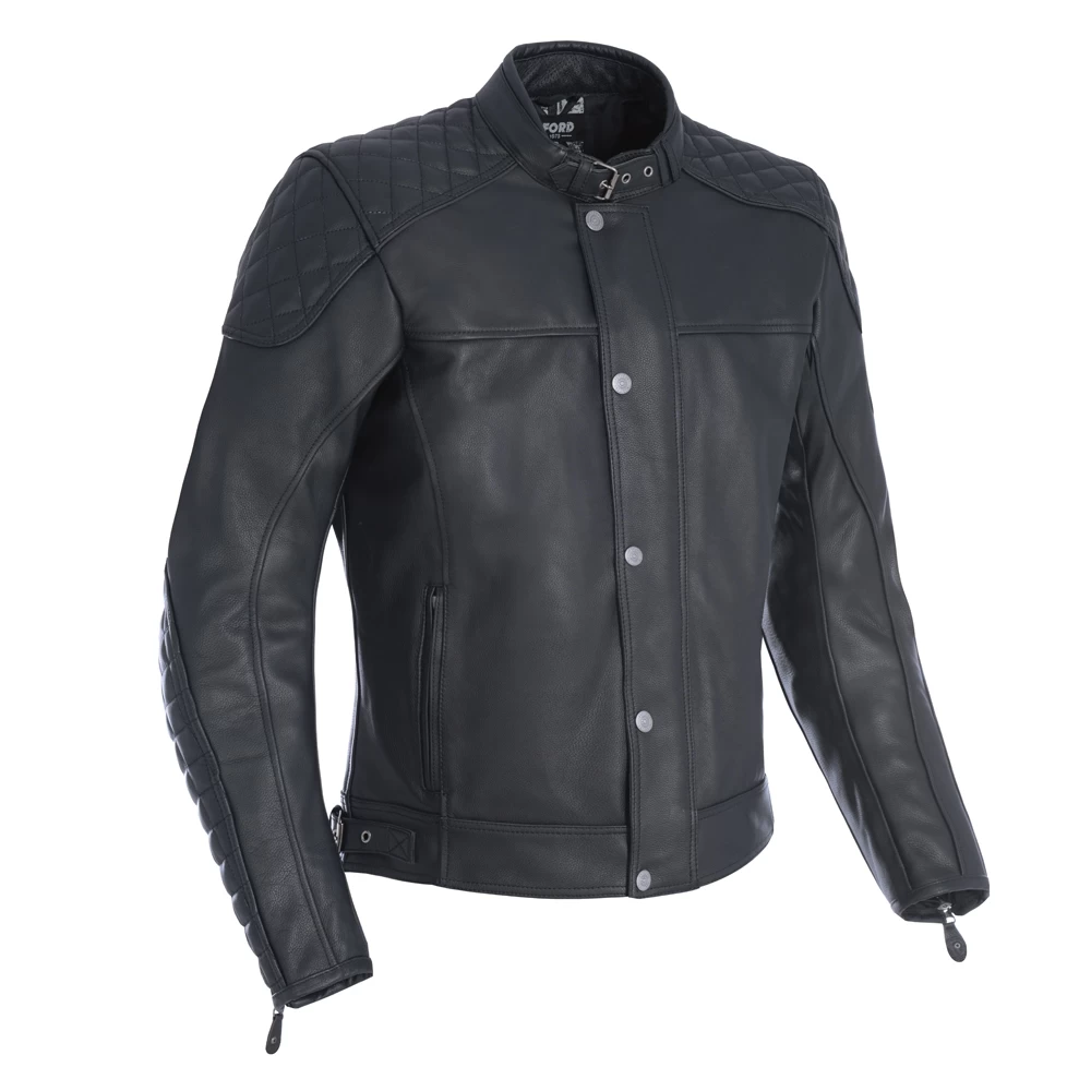 This classic leather jacket from Oxford is created in a premium cowhide leather, providing a highly abrasion resistant outer material that is perfectly in keeping with the classic vintage stylings of the jacket. The jacket includes CE Approved shoulder and elbow armour as standard and offers a pocket in the rear of the jacket for adding a CE approved back protector should you choose to.