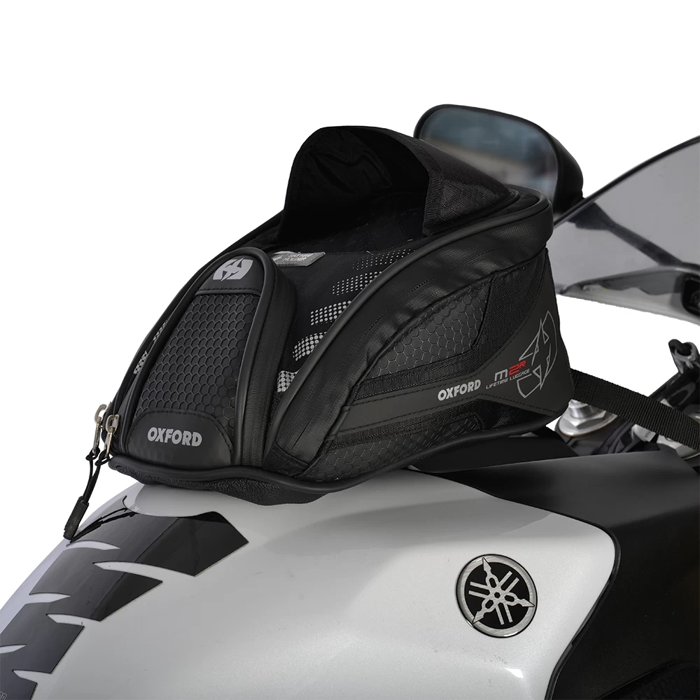 The Oxford M2R Mini Tank Bag has a 420d nylon ripstop, abrasion resistant outer which ensures longevity and keeps it tough over a long period of time. This is coupled with an inner waterproof liner which keeps your belongings dry, as does the waterproof electrical output.