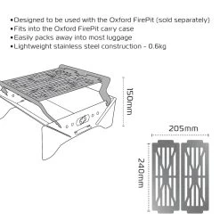 - Flat-packs into 600D polyester Firepit carry pouch measuring 320 x 120 x 15mm