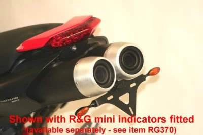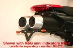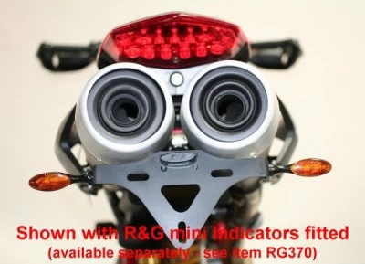 Mini or micro indicators (OEM indicators also fit as standard) can be fitted to this tail tidy (see images). For R&G Mini Indicators see product code RG370.