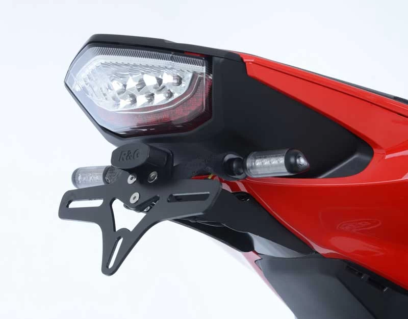 R&G tail tidy unit is easy to fit and will radically transform the rear end of the bike, removing the expansive (and often ugly!) OEM licence plate holders – replacing them with a much sleeker looking unit, tucking the number plate underneath the rear seat unit, for a much more stylish sporty look.