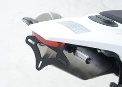 As used by Performance Bikes, Fast Bikes, Superbike Magazine and MCN to name but a few. The R&G Licence Plate Holder has been designed to replace the very large, original plastic licence plate holder and improve the lines of the modern machine. The licence plate holder comes with all necessary holes drilled and all the fixtures and fitting you may need. Where necessary, the Tail Tidy comes with a neat little built-in licence plate light.