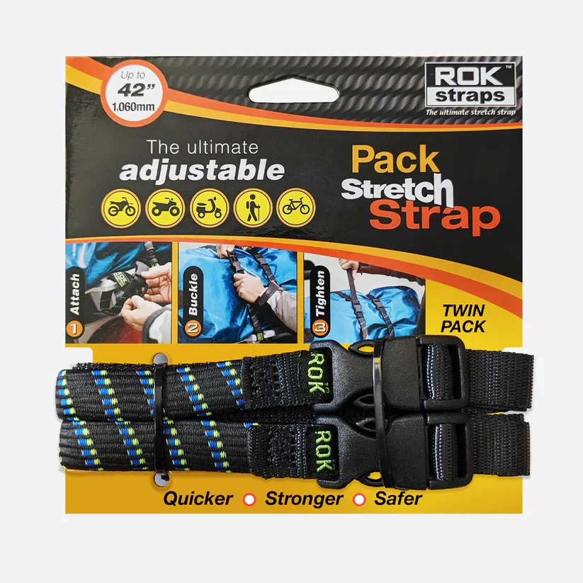 The ROK Pack Straps are ideal for the biker on the move! Easy to use, easy to unload and with great durability, these ROK straps are brilliantly functional and long lasting. The materials used in the creation of the ROK straps are rot resistant, ensuring that the weather doesn’t deteriorate your straps. No parts used in the ROK straps will rust over the course of its life either, ideal for the all-weather biker.