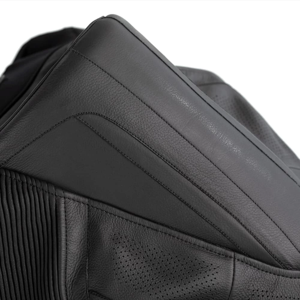 Despite the heavy-duty nature of this airbag leather race suit, there are also been careful considerations made in terms of rider comfort. A woven four-way stretch material can be seen in many places around the suit, such as a long length section that runs from the wrist, through the inner arm and up to the collar. This material is also found at the rear of the ankle and working its way up the crotch area of the suit. This material offers a stretchy feel and a very accommodating fit to the suit, a welcomed feature when riding aggressively or walking through the paddock. The four way stretch materials used in the RST Pro Series Evo suit is seam free; no unnecessary seams means no unnecessary rubbing or chaffing in these areas! There’s also extensive accordion stretch panels throughout the RST Pro Series Evo suit, most noticeably a full-length panel at each side of the torso. This not only offers a greater range of movement but also ensures that the suit can reasonably expand should the airbag system be inflated in the event of an off. A large size aerodynamic race hump can be found at the rear, helping create a impeccable aerodynamic riding profile when tucked against the tank and working perfectly with racing helmet than feature longer spoilers.