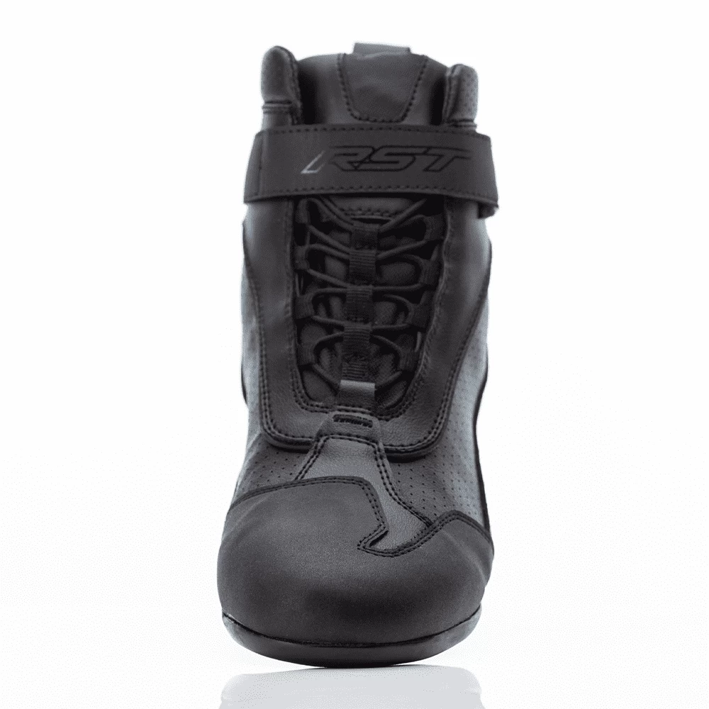 A traditional lace fastening helps complete the motorcycle trainer look. The inclusion of a โlace garageโ provides the opportunity two took the laces into a small pocket on the tongue of the trainer. This ensures that the lace ends are securely tidied away, preventing the lace getting trapped around the bike when riding. A small rear puller tab helps you quickly and easily get the boots on and off, a thoughtful feature from RST.
