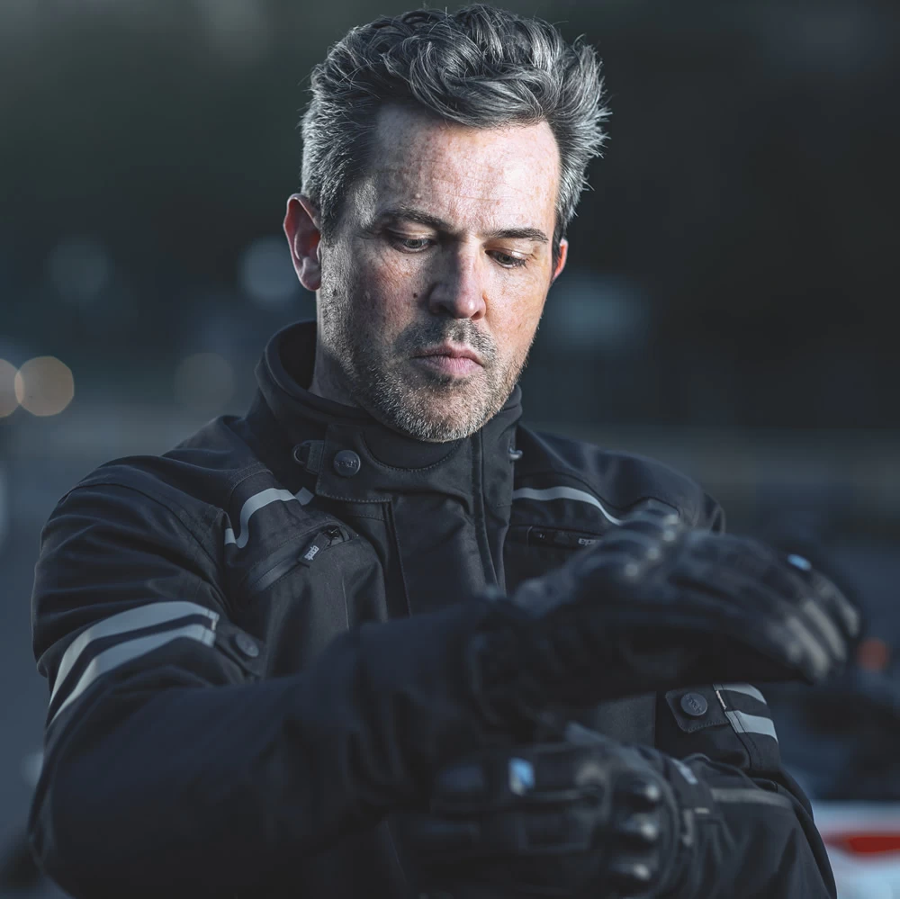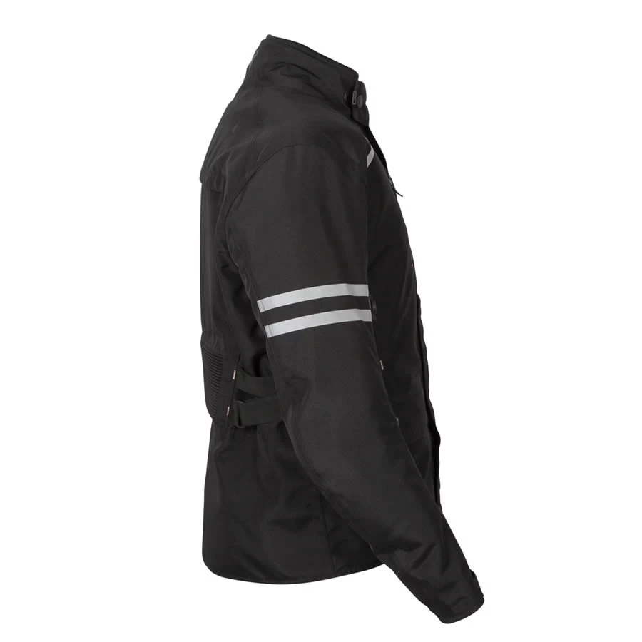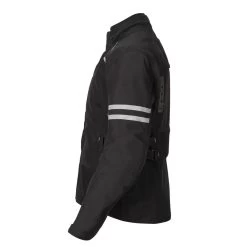 Created in a traditional abrasion resistant textile material, the jacket itself is naturally hard wearing, with the inclusion of a CE approved five-piece armour set at the back, shoulders and elbow as standard. The inclusion of double stitched seams throughout makes for increased seam strength and a stronger motorcycle jacket overall, giving you confidence with the knowledge that your new laminated motorcycle jacket will keep you protected should the worst occur. It’s easy to see why the jacket has achieved CE certification to level AA. Passive protection comes in the form of subtle reflective detailing, providing increased visibility when riding at night or in poor weather conditions.