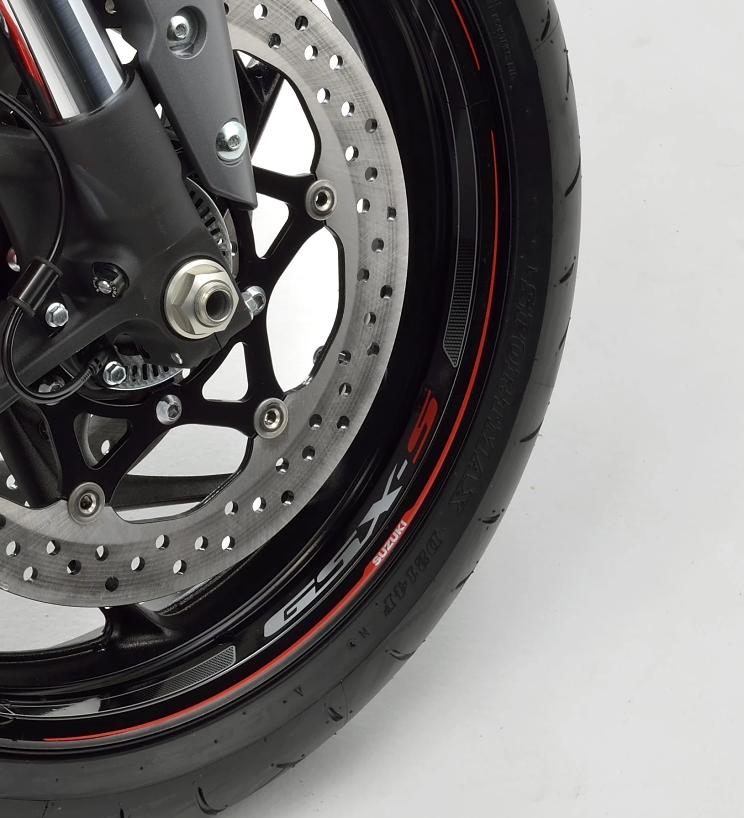 A single wheel rim decal to add an extra style edge to your GSX-S1000, featuring the GSX-S logo.