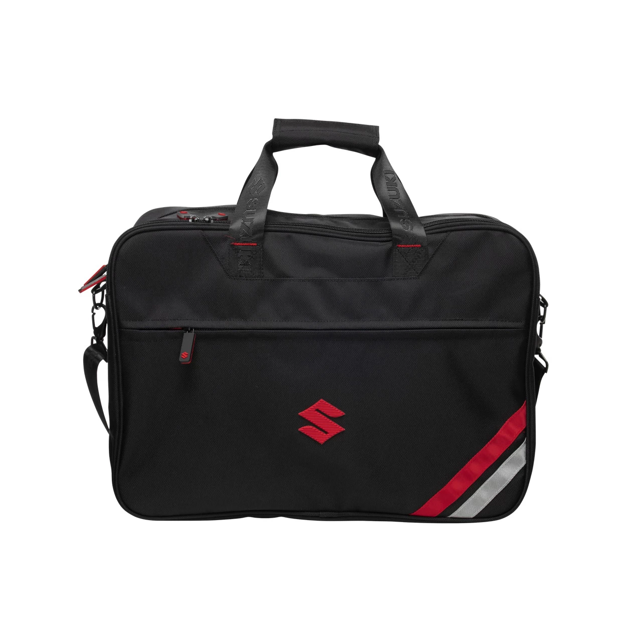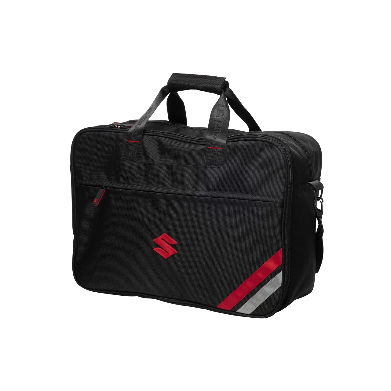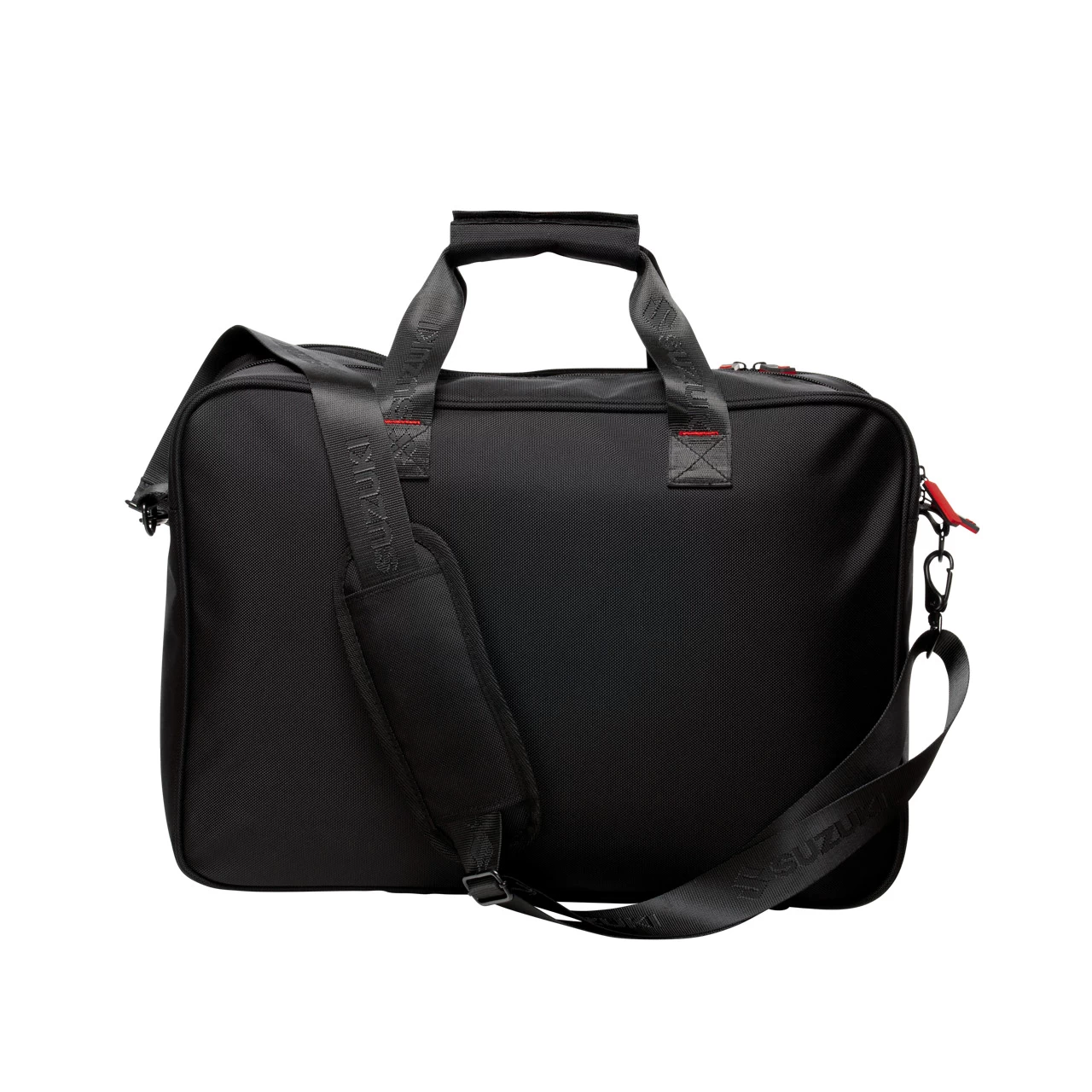 Ideal for the Suzuki lover on the move, this Suzuki Team Black Notebook Bag is perfect for storing the items you need for the day. From folders and documents to notebooks, the Suzuki Notebook Bag features plenty of potential storage for you to make the most of. The bag itself is constructed from a 100% nylon shell fabric, giving the bag a robust, hardwearing look and feel while the 100% polyester lining is smooth, making for the ideal lining for storing items such as your laptop etc. The bag can either be used with the shoulder straps or with the dual carry handles found at the top of the bag.