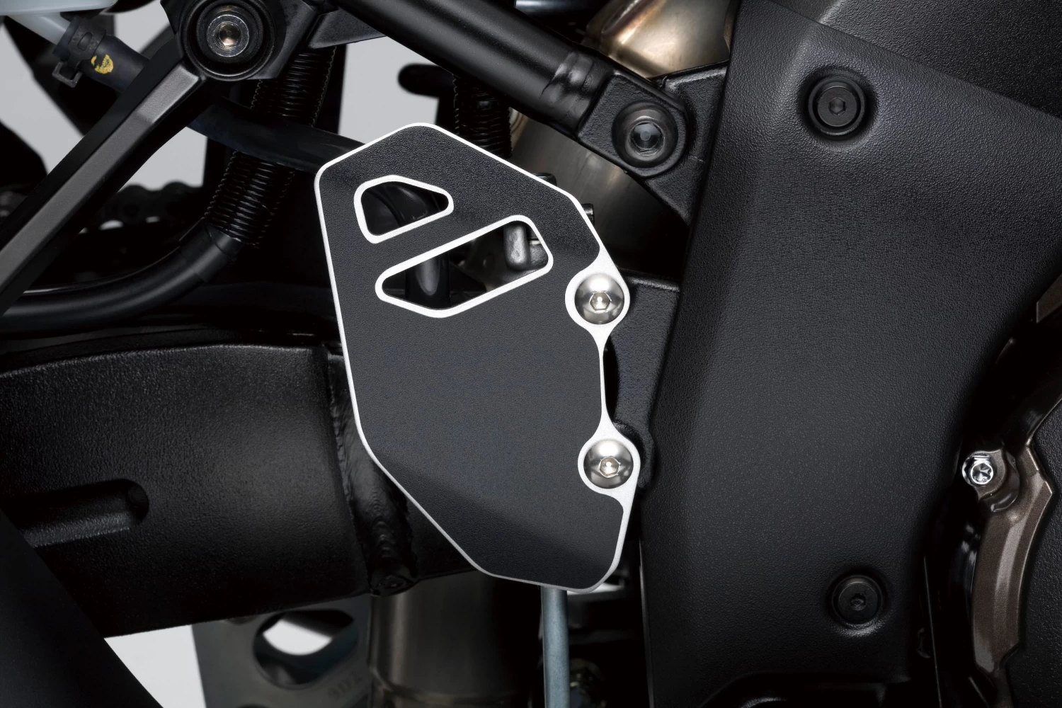 This Suzuki Genuine heel plate sticker set for the V-Strom 1050 and V-Strom 1050 XT guards against boot scuffs and marks, adding an extra layer of protection and a smarter look.