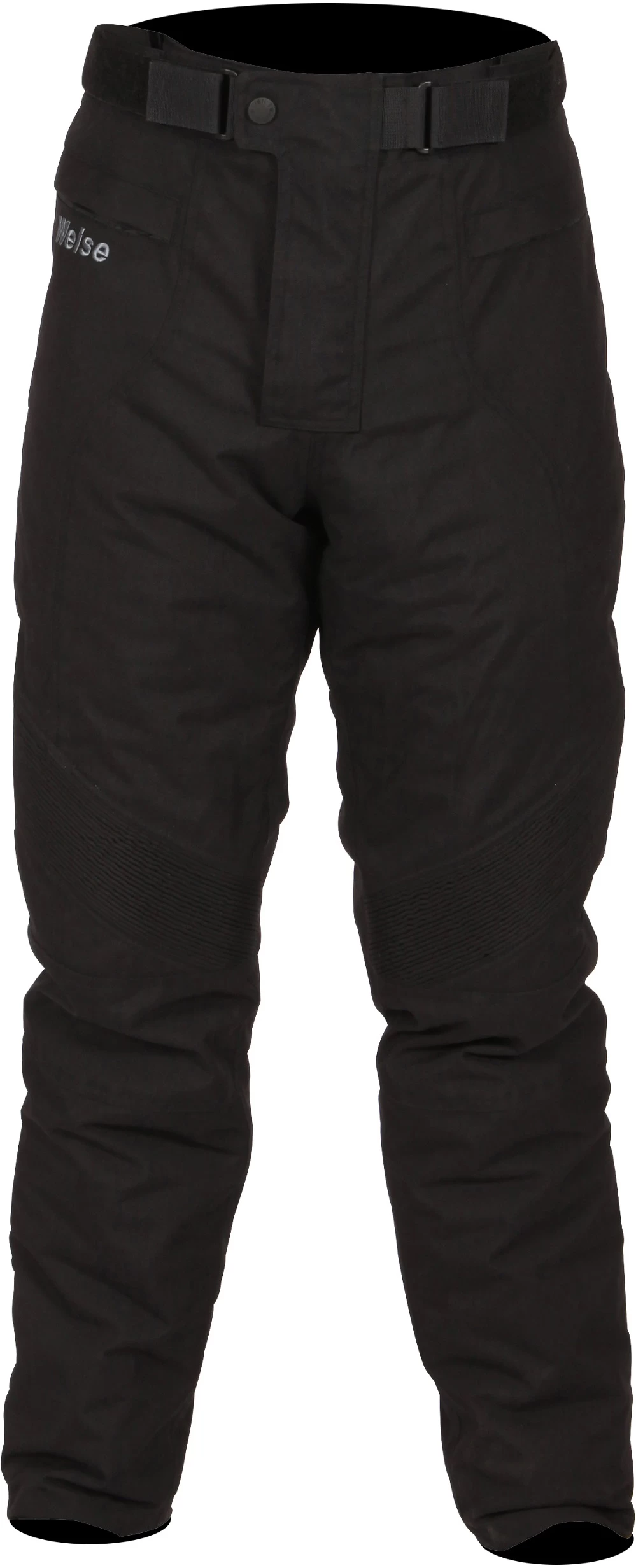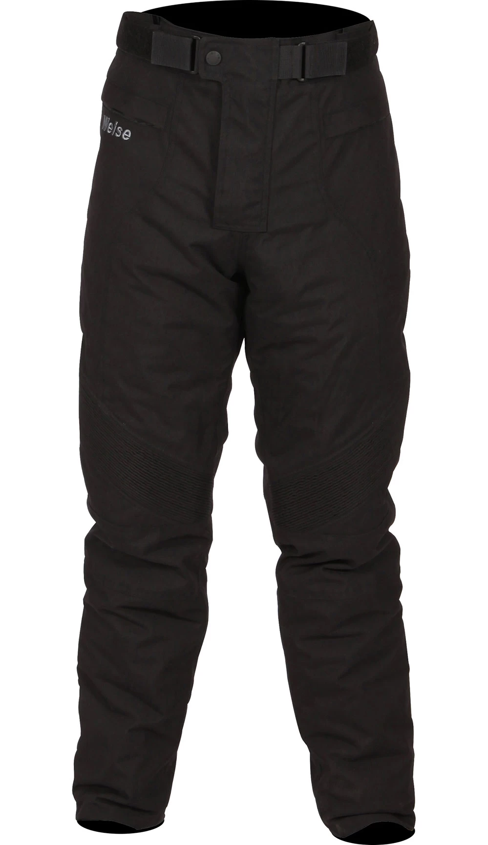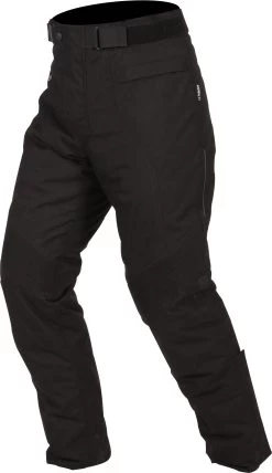 To keep you protected your knees are covered with CE approved armour. This shields you against impact and abrasion in the event of an accident with the option of removing them for washing the trousers or replacing them. The raised back waist also provides further coverage to your lower back which you can strengthen by attaching to a textile jacket using the eight inch zipper attachment – this keeps the jacket from riding up and exposing your skin in an accident.